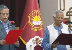 আদর্শবার্তা ডেস্ক : অন্তর্বর্তীকালীন সরকারের প্রধান উপদেষ্টা হিসেবে শপথ নিয়েছেন শান্তিতে নোবেলজয়ী ড. মুহাম্মদ ইউনূস।...